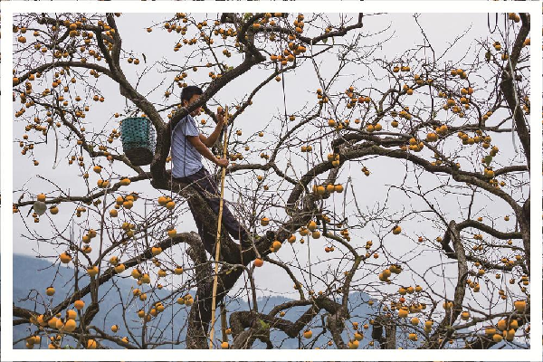 摄影 摘柿子