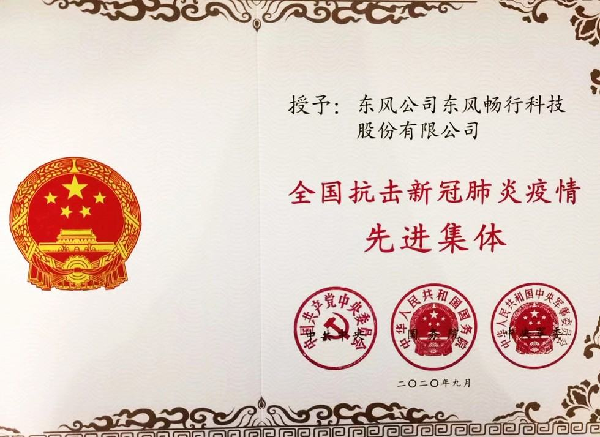 东风畅行获评“全国抗击新冠肺炎疫情先进集体”