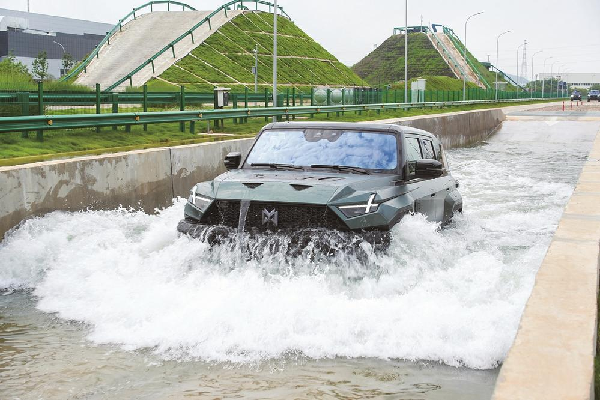 车辆下线后,会进入试车跑道,猛士科技工程师们将根据试车情况进行进一步的调校。
