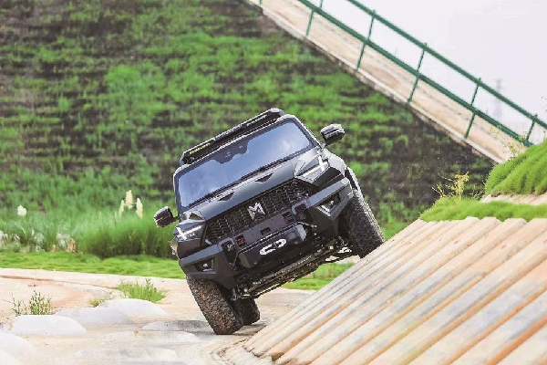 重达3.5吨,零百加速仅需4.2秒;配备高性能的空气悬架,车身直接抬高10厘米,涉水深度可达1米,水花四溅中,越野无忧;车头不变、车身斜行,蟹行模式打破常规行驶认知;“8”字绕行,灵活转向,极致的转弯半径让猛士917这个庞然大物显得格外轻松自如。