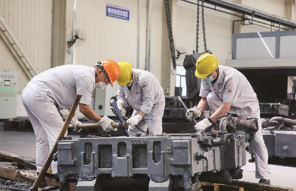 近日,在铸铁车间清理区现场,职能部室人员经过安全培训后,两人或三人一组,分工协作,和车间的清理员工一起,奋战在生产现场,他们使用铁锤、风镐、钢钎等工具,进行除砂、打磨、毛刺清理,推动铸铁车间日产量不断提升。