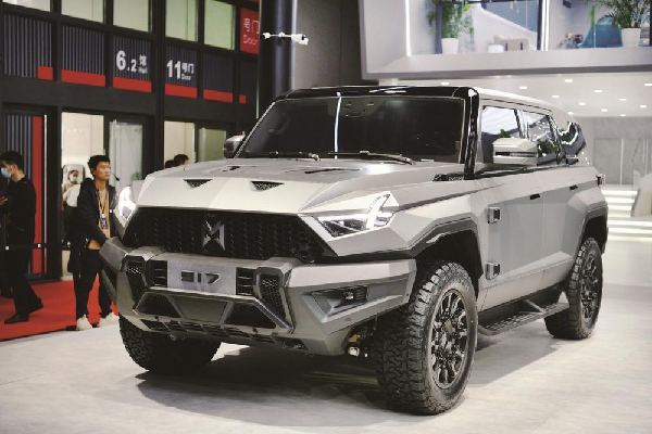 猛士917是猛士智能越野架构M TECH的首发车型,采用非承载式车身结构,车架高强度钢覆盖率达85%以上。其搭载的多级智能可调空气悬架,可支持5挡调节、150mm的超大行程悬架高度调节范围。在VMC底盘动态域控制、AKC后轮线控转向等先进技术加持下,猛士917最小转弯半径仅5.1米,支持“蟹行”横向行驶,给用户带来豪华电动越野新体验。