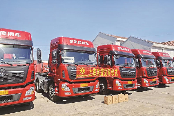 近日,东风商用车上海东贸店向某公司批量交付东风天龙牵引车(如图)。据悉,该公司主要从事油脂运输,上海东贸店销售人员得知其有更换车辆的需求后,第一时间与该公司建立联系,推介车辆配置及金融方案,并多次上门拜访沟通,为客户定制可靠的车辆配置、金融方案,明确交付节点,最终成功签下订单。