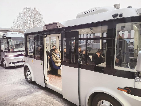 在天津市河北区运营的东风悦享无人驾驶巴士