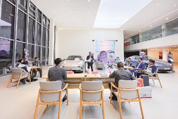 3月19日晚,东风卓联武汉徐东奕派店灯火通明,全体营销将士在一天营业结束后,举办了一场eπ007销售技能大赛,通过现场PK检验前期培训成效。5位销售顾问围绕汽车的车前45°、车侧方、车后方、驾驶室、车后排、车机舱六个方位,依次展示车辆外观设计、亮点配置、智能科技、平台架构、品牌及价值所在。担任评委的店总、销售经理、市场经理也同销售顾问们一起,进一步巩固对产品知识的掌握和运用。据介绍,该店将按季度常态化举行技能竞赛,并将开展针对性强化式训练。