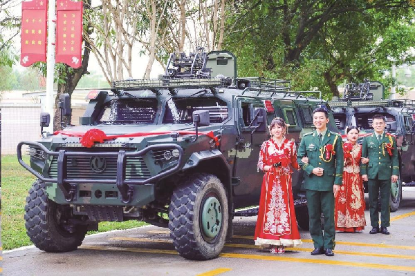 “兄弟们,向幸福发起‘进攻’!”近日,武警雪豹突击队隆重举办军营集体婚礼,东风猛士作为特殊的婚车,载着新人们来到婚礼现场。来自五湖四海的新人齐聚一堂,在亲人、战友的共同见证下步入婚姻殿堂,幸福与甜蜜在此刻汇聚交融,一幅浪漫的爱情画卷徐徐展开。这一刻,浪漫与忠诚同在,铁骨与柔情并存。(来源:人民武警微信公众号)