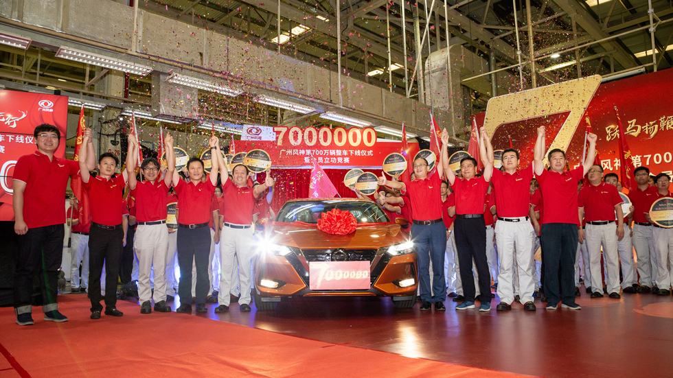9月19日,东风日产广州风神在花都二工厂举行第700万辆整车下线暨全员立功竞赛活动。当天上午十点,在260余名干部员工的见证下,一辆全新的橙色轩逸缓缓驶出,广州风神正式迎来第700万辆整车下线。