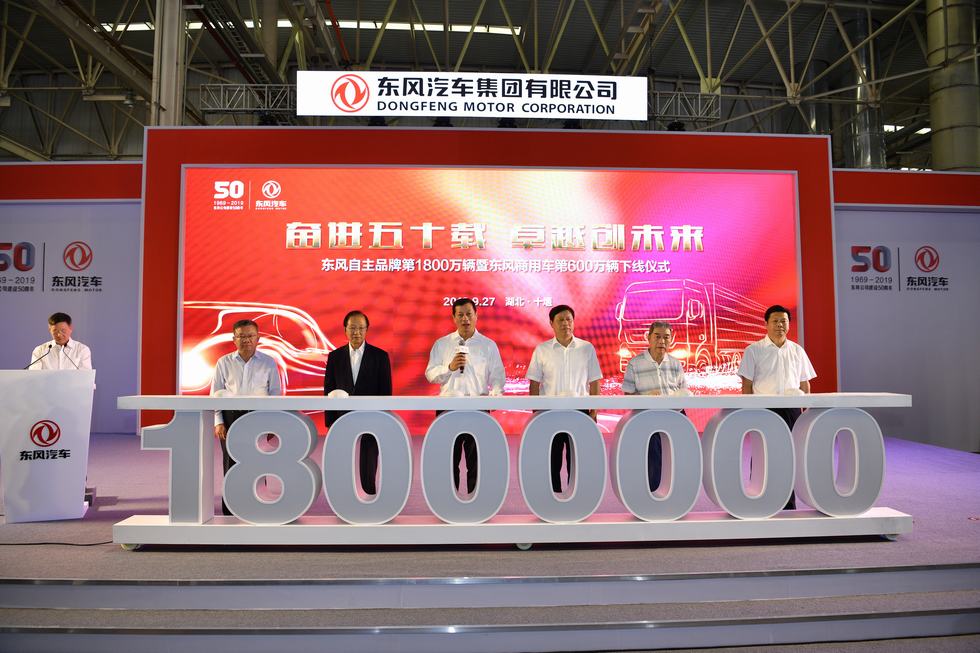 “我宣布,东风自主品牌第1800万辆暨东风商用车第600万辆下线!”9月27日,在东风商用车有限公司重卡新工厂,随着公司董事长、党委书记竺延风洪亮的声音落地,一辆火红的东风天龙KX从生产线上驶下。在新中国成立70周年、东风公司建设50周年之际,东风自主品牌发展迎来又一个新的里程碑。