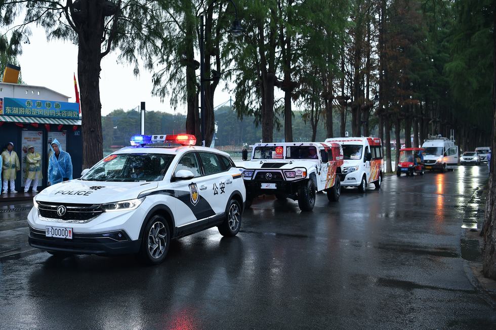 东风风神全新一代AX7、东风猛士在为军运会火炬传递进行服务保障