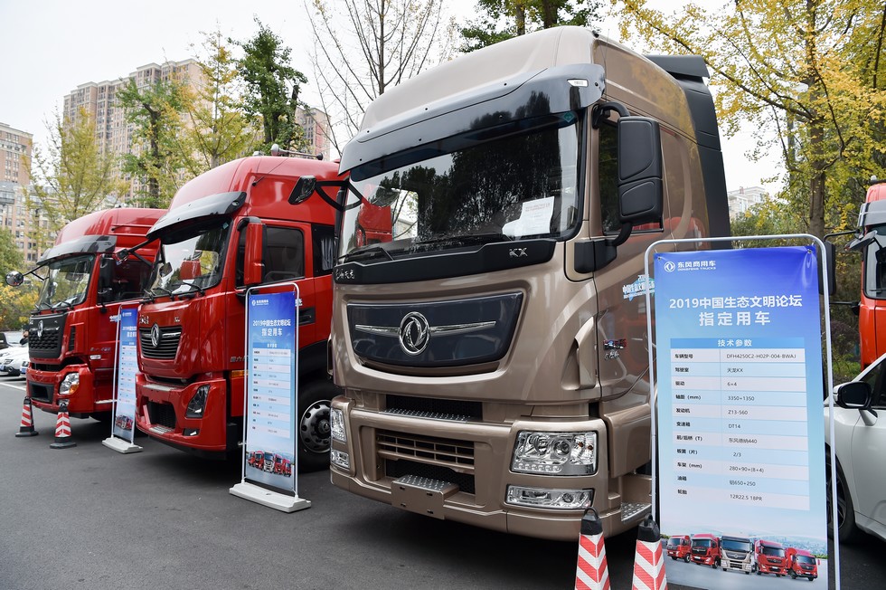 东风商用车6辆国六车亮相中国生态文明论坛年会开幕式现场