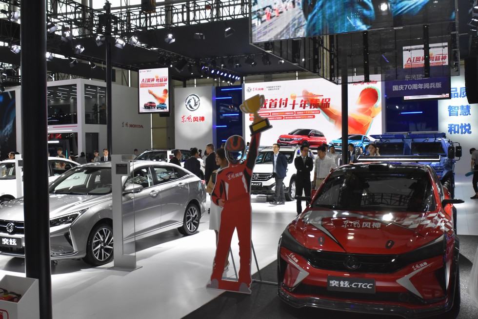 东风旗下9个乘用车子品牌携超百辆展车参加第十七届广州国际车展,图为东风风神展台