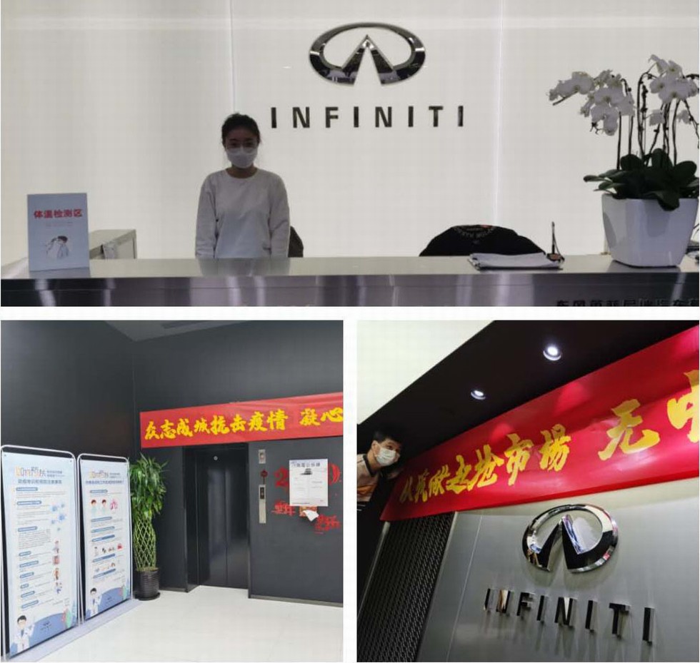 在大连,东风英菲尼迪启动复工复产。每天为复工员工提供口罩,并在微信端推送防疫知识指南,让员工安心、安全生产。