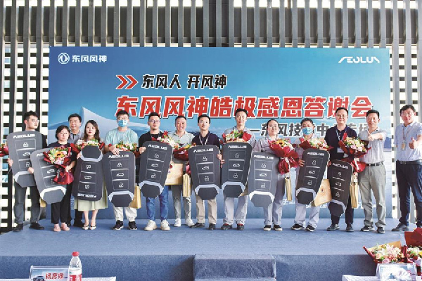 “东风人,开风神。皓极大卖!”8月17日,在公司技术中心、东风乘用车公司联合东风风神武汉东峻旗舰店举办的“东风人 开风神”东风风神皓极感恩答谢会上,65名公司技术中心、东风乘用车公司员工喜提东风风神皓极新车。