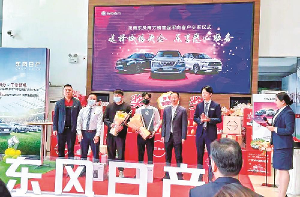 “最后一个月,我要超过11月份月销24台车的纪录,要向更高目标全力冲刺!”12月13日,在海口海龙专营店举行的海南东风南方销售冠军向客户交车仪式暨销售冠军经验分享会的现场,来自海口海鹏店的海南东风南方日产品牌销售冠军蔡振武信心满满地表示。现场,蔡振武向客户交车后,以“奋楫者争先、勇进者常胜”为主题,进行了经验分享。听了销冠的分享后,大家纷纷表示将坚定目标,坚持始于客户、忠于服务,以奋力拼搏的姿态克难奋进,誓达目标。