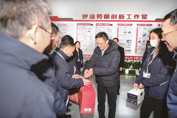 随后,黄伟一行到公司技术中心刘浩劳模创新工作室、新能源及动力中心三电实验室了解最新工作成果,对广大研发人员过去一年的辛苦工作表示感谢。“东风公司的技术进步,离不开各位专家的努力和贡献。”黄伟在与优秀科技人才交流时说,“去年,东风公司发明专利授权量、公开量均位列自主整车集团第一,这说明我们的创新实力正在逐步增强。”