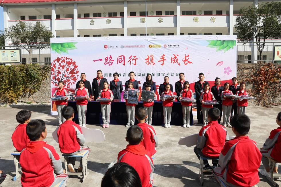 10月29日,东风畅行出行事业部、东风商用车有限公司志愿者一起来到丹江口市习家店镇东风商用车希望小学,开展公益助学活动。东风出行、东风商用车志愿者为希望小学“交通安全”、“兴趣英语”等主题的系列“公益助学课堂”援建项目授牌,并向学生们赠送了书包和文具。