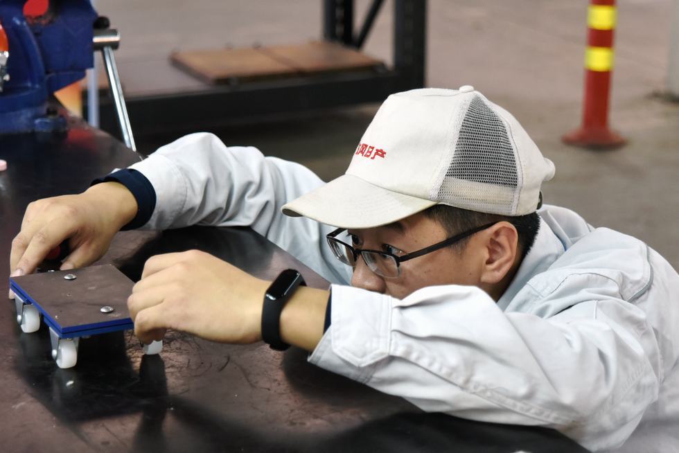 改善技能竞赛项目参赛选手、东风汽车车轮随州有限公司邹鑫:这次比赛设置的内容是做一个四轮移动小车,可自由顺畅移动。这就需要选手要有一定的钳工功底,钻孔要垂直,力度控制得当。比赛整体上难度不大,基本技能水平,参赛选手都能达到。要想取得理想成绩,在严格遵守规章、制作步骤等方面,要做更多的努力。
