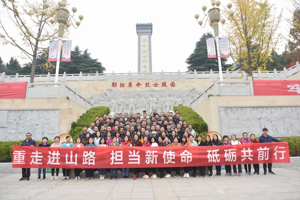 重走来时的路,是为了不要忘记为什么而出发。活动的第一站,大家乘坐大巴,来到十堰市爱国主义教育基地——郧阳革命烈士陵园。在这里,大家满怀崇敬,缅怀革命先烈,瞻仰革命英雄纪念碑,并敬献花篮。