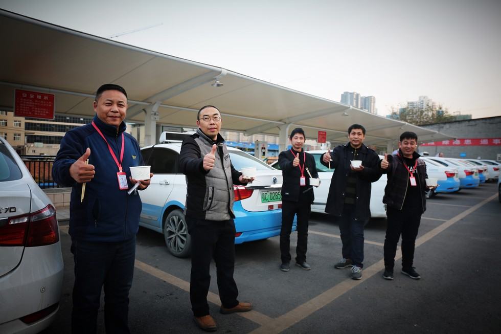 端着手中热气腾腾的水饺,所驾驶车辆正在充电的网约车司机纷纷表示感谢,“感受到组织的温暖,给公司铁路运输处点赞!”