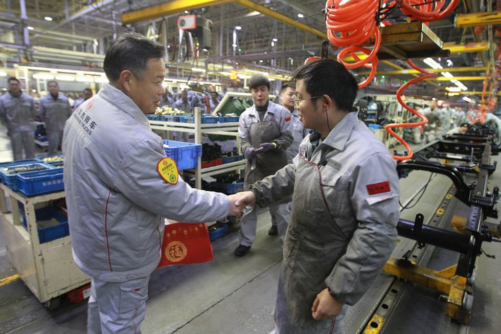 12月16日晚7点多,东风商用车有限公司车辆工厂领导兵分两路,深入该厂西坪厂区生产一线,走访慰问一线员工。近期,车辆工厂迎来高产,全体员工加班加点。此次该厂为员工定制了烧鸡、烧鸭、辣子虾、麻花等慰问品。“辛苦了!”“感谢你们为工厂作出的贡献!”在西坪厂区,车辆工厂领导与员工握手交流,了解生产生活难题,叮嘱员工要安全生产,保证完成生产任务。对此,装配五车间员工彭子曦在朋友圈写道:最!烧鸡、烧鸭、辣子虾、麻花。这是勉励我们——2020年怀揣“鸡”动的心,像“麻花”一样拧成一股绳,像“虾”一样俯下身子埋头苦干,向着新的高度冲“鸭”!