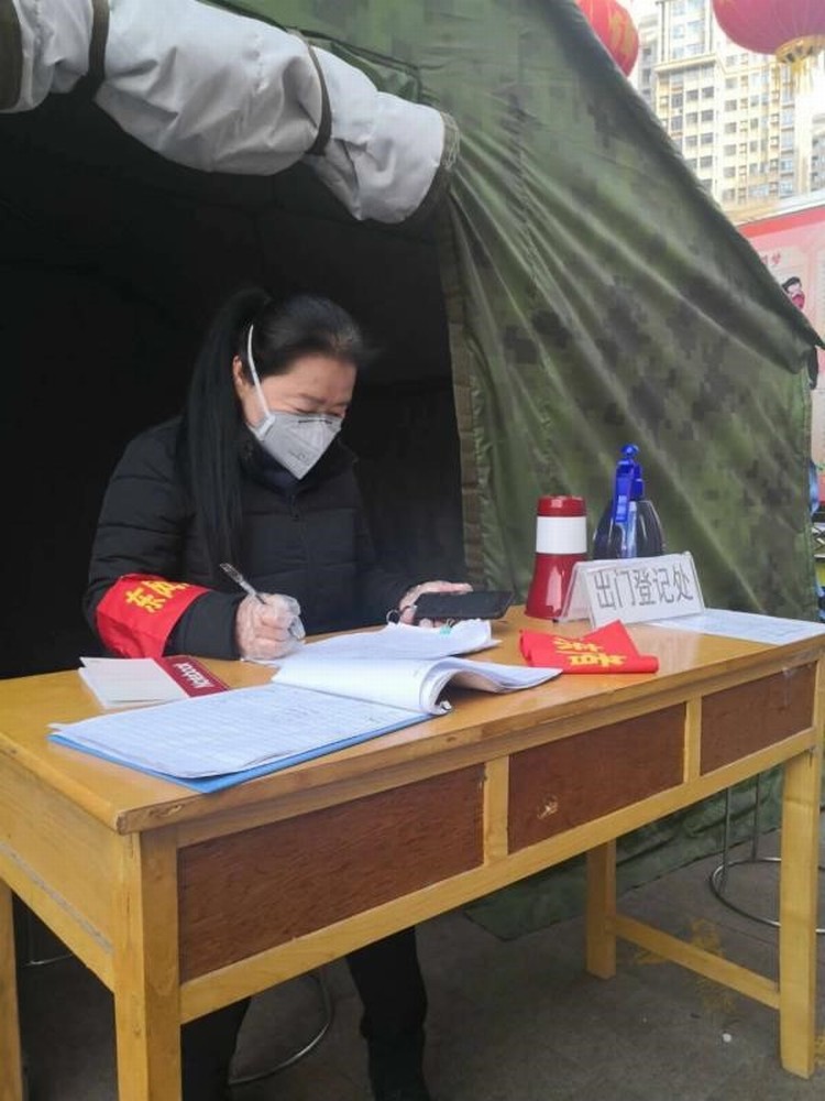 二月四日至今,做为共产党员,我及时到社区党组织进行报到,社区党组织对于我们的主动奉献给予了很大的肯定,一直说,党员就是一面旗帜,也希望通过我们带领广大业主积极投入到社区服务中。随后,分配我到门卫进出人员管理的岗位上,从公司职员转变为社区管理人员,从坐办公室到小区门口值班,岗位、职责发生了根本性改变。我骄傲,因为我代表公司的共产党员,强烈的责任感由然而生!核对进出小区人员信息和申报表的一致性,登记、测温、消毒三部曲一气呵成!小区成立了临时党支部,我被选为党支部委员,排班、登记、支部信息汇总等等,由于有公司支委的工作经验,干起来是井然有序。在小区团购蔬菜的工作中,巾帼不让须眉,我跟着男同志一起搬物资、卸物资,凡事冲在最前面。除了核对进出小区人员信息,还需要对不符合出小区条件的业主进行耐心劝诫,平时都是同一小区的邻居,此时的拒绝看似有点不近人情,可是岗位的职责、疫情的严重性时刻警醒我,做好防控,是为了大家今后更加平安幸福的生活。好在,邻居们都是能相互理解的,女性的细心、亲和在此时拥有了绝对的优势,所以在我值勤期间未发生一起违规进出小区的现象。